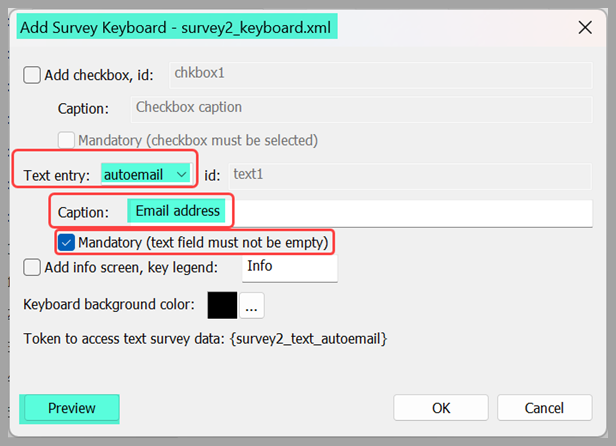 You will see a window Add Survey Keyboard – survey1_keyboard.xml